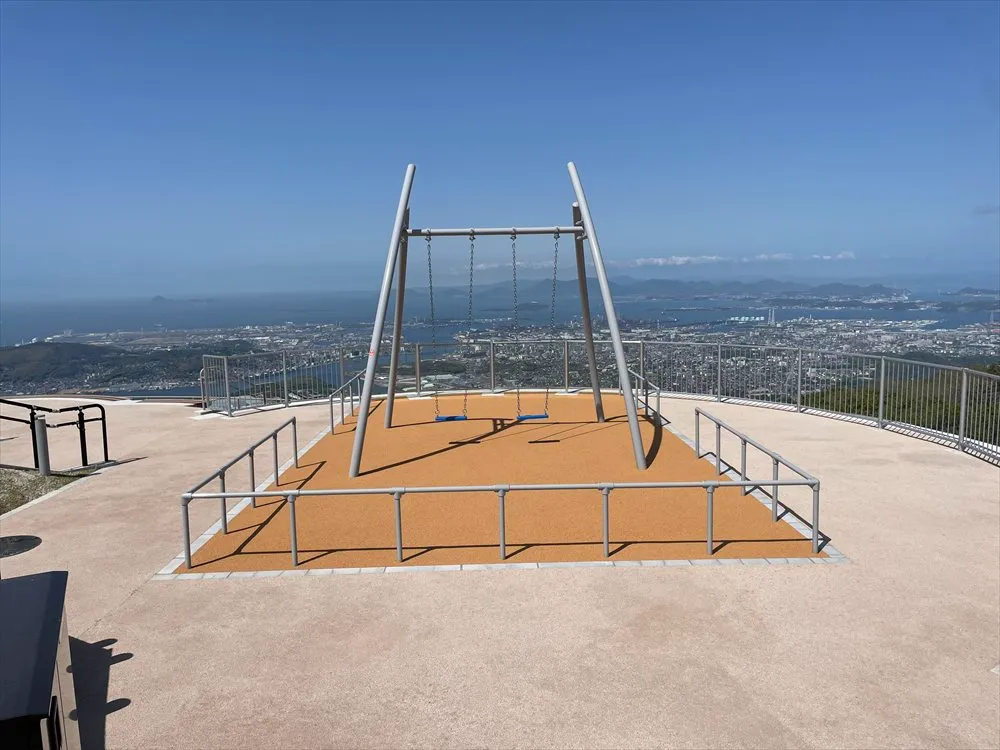 標高622mの皿倉山は夜景の美しさで知られ、山頂からの眺めは「100億ドルの夜景」とも呼ばれています!山頂にはブランコも設置されていて、眺望を楽しみながら遊べます。