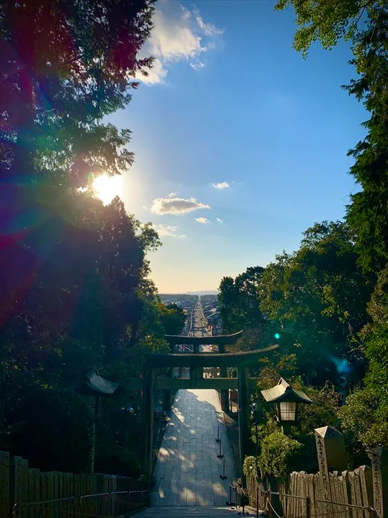 2月と10月には、参道を夕陽が一直線に照らす「光の道」が見られることでも有名です。