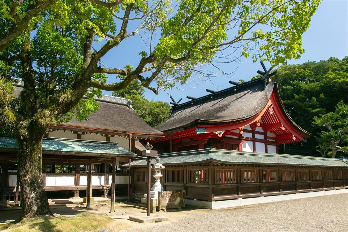 約1800年以上の歴史を持ち、開運や商売繁昌の神様として地域の信仰を集めるパワースポット。拝殿前にかけられた大しめ縄は、毎年掛け替えられるしめ縄としては日本一の大きさだそうです!