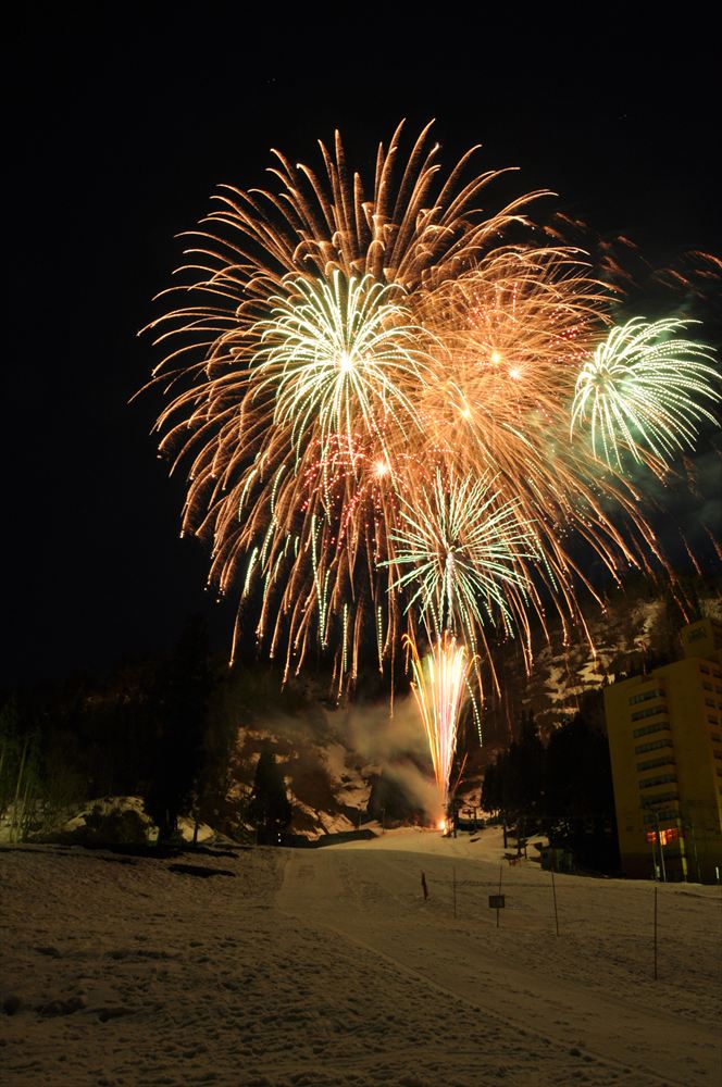 湯沢町の各スキー場では、冬季に創作花火の打ち上げが行われます。冬の澄んだ空気の中で見る花火は一層鮮やか。(12月~3月、会場により異なる)