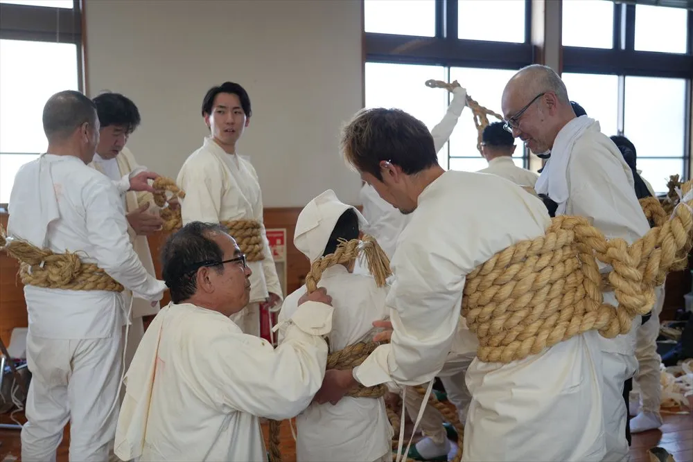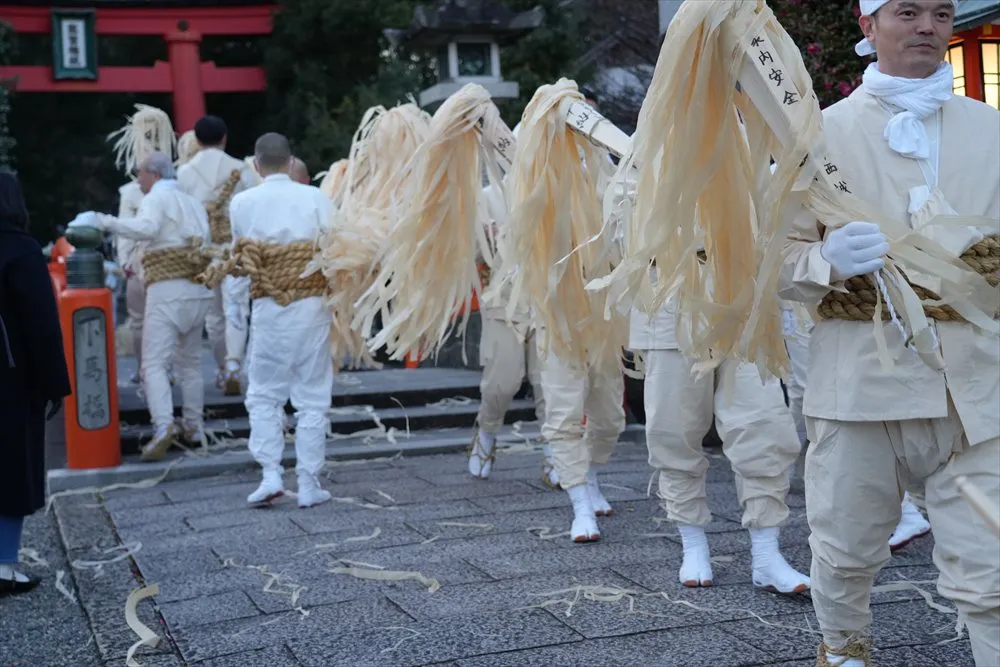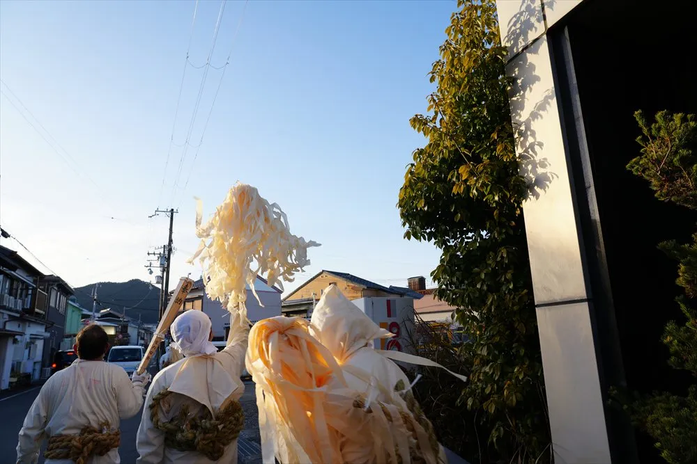 だが午後になるにつれ、白装束の男たちが町を歩き、古社を巡り、松明をぶつけ合いながら「たのむで」と声を掛け合う。夕暮れが近づくころには、町全体が目に見えない緊張に包まれていた。