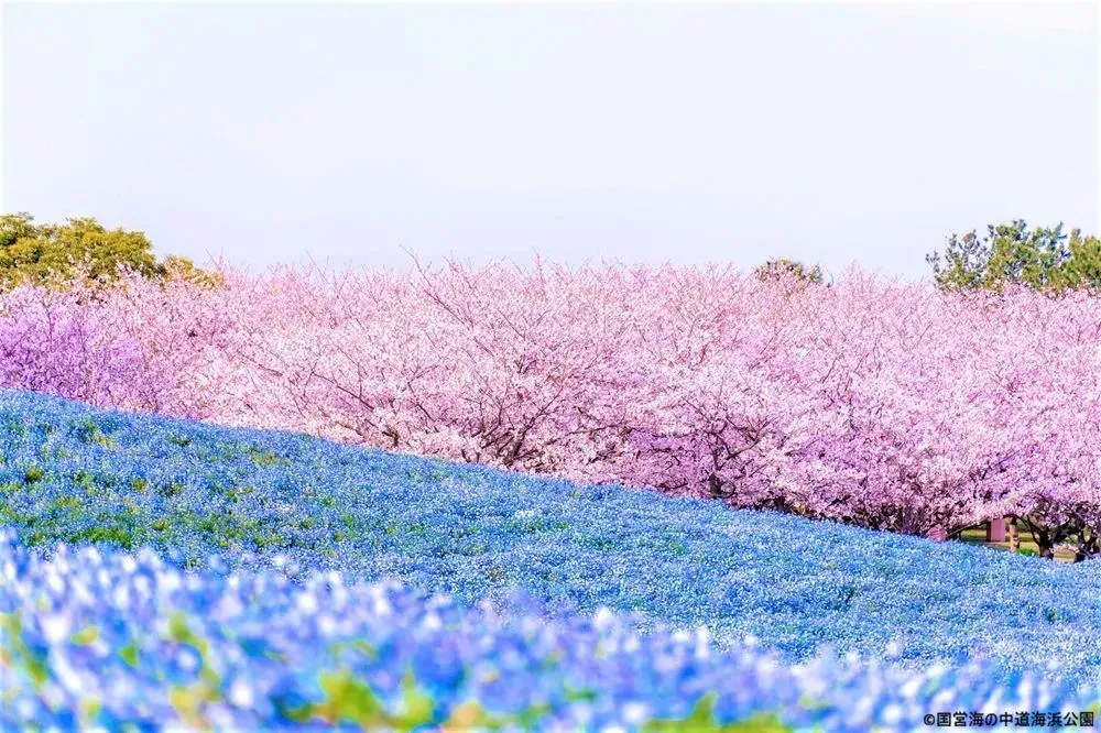 這是座被大海環繞、佔地廣闊的國營公園。宛如藍色地毯般的粉蝶花海美不勝收!此外還有油菜花、鬱金香等季節花卉盛開。4月上旬說不定還有機會看到粉蝶花和櫻花一同綻放的美景喔!