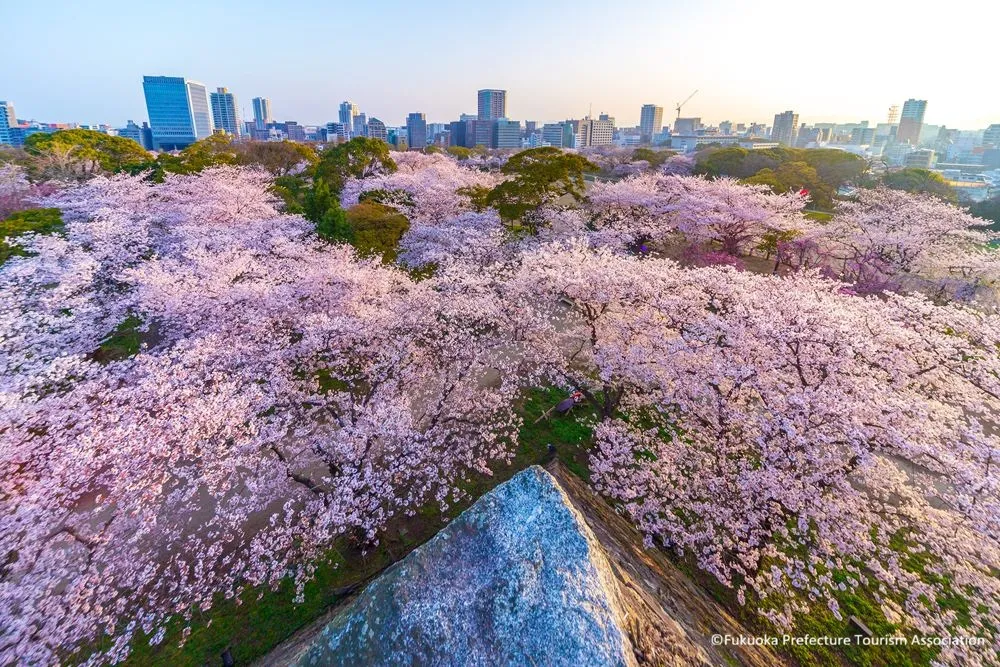 以福岡城址[雅張1.1]為中心延伸的「舞鶴公園」,是福岡市內數一數二的櫻花名勝。園內種植了1,000棵櫻花,加上距離鬧區很近,是非常受歡迎的賞花景點!相鄰的「大濠公園」擁有優美的水岸與綠意景觀,是市民休閒放鬆的好去處。而從大濠公園步行約15分鐘的「西公園」,是福岡縣唯一入選「日本櫻花名所百選」的景點,可以欣賞到約1,300棵櫻花的壯觀美景。