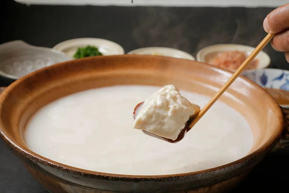 嬉野也是日本的重要大豆產地之一。溫泉湯豆腐正是使用產自當地的大豆製作,再以溫泉水慢慢熬煮而成。